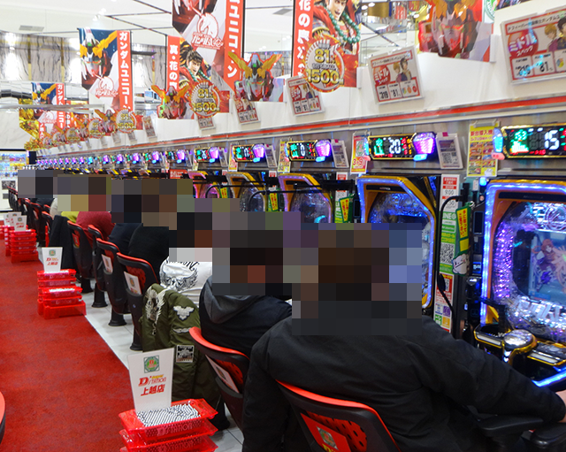 随所から華やかなムードが感じられた「スーパーD'ステーション上越店」。稼働率、満足度がともに高いといった機種がたくさんあった。