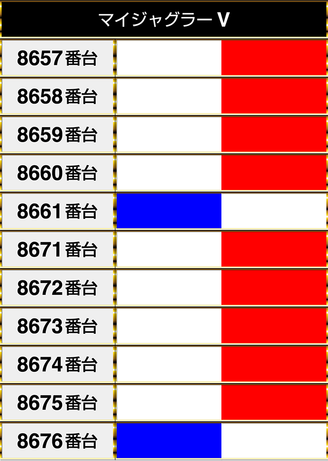 50台以上が設置されている『マイジャグラーV』も複数の場所にプラスptが並んだ。