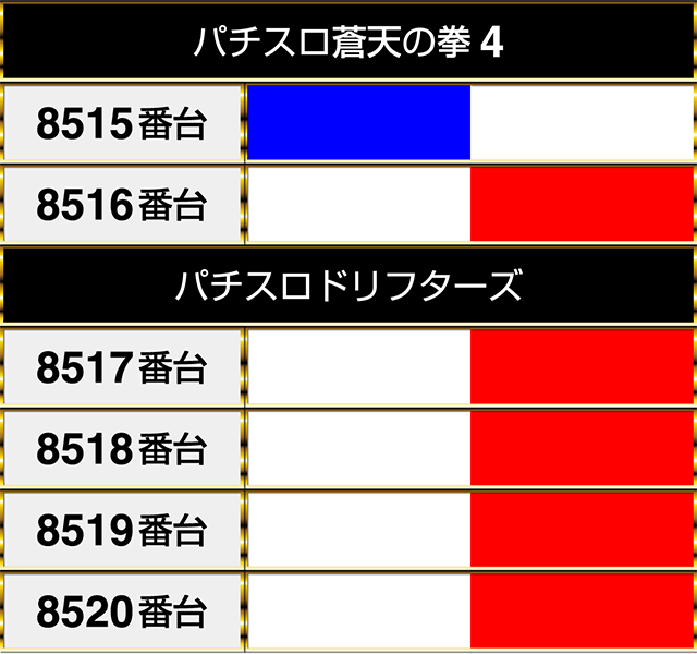 となりにある『パチスロ蒼天の拳4』の1台をあわせると、5台が連なってプラスptを記録!