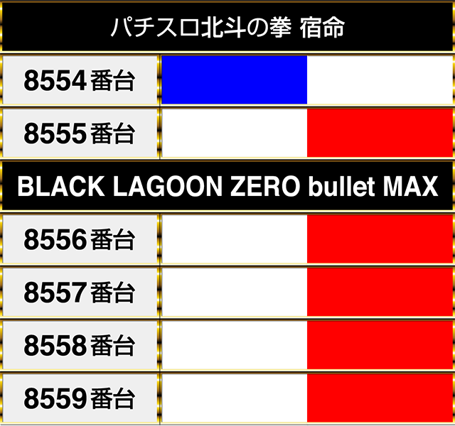 2機種を通してプラスptが並ぶ場所は、『パチスロ北斗の拳 宿命』と『BLACK LAGOON ZERO bullet MAX』にもあった。
