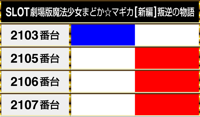 『SLOT劇場版魔法少女まどか☆マギカ[新編]叛逆の物語』も3台が連なってプラスptとなった。