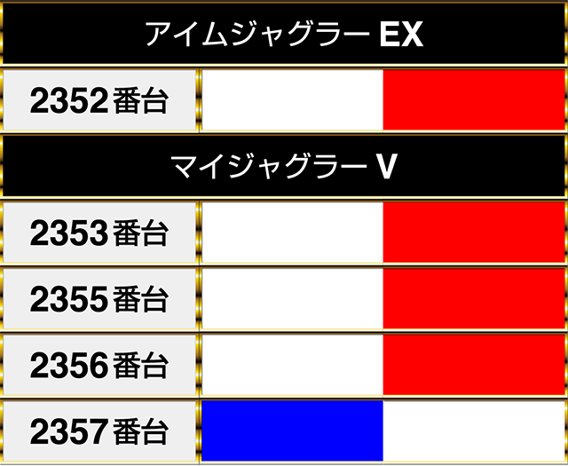 複数の機種を通してプラスptが並んでいる場所は、『アイムジャグラーEX』と『マイジャグラーV』にもあった。