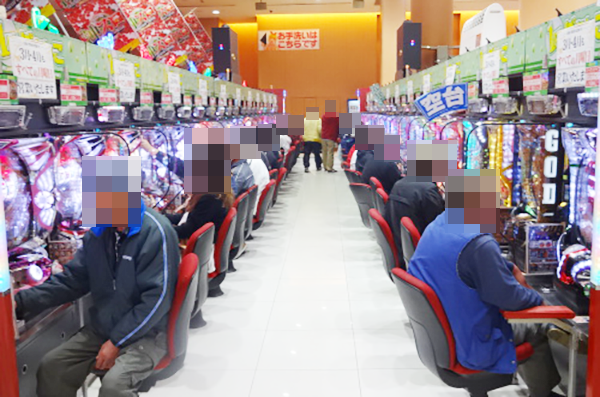 大勢のプレイヤーが右打ちを楽しんでおり、にぎやかな光景が広がっていた。