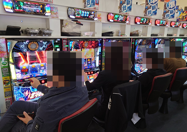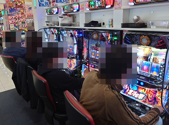 夕方頃にパチスロの状況をうかがうと、『パチスロ北斗の拳 宿命』に笑顔のプレイヤーが並んでいた。
