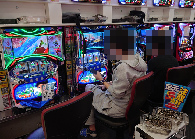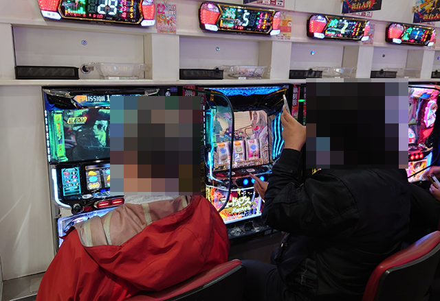 『SLOTバジリスク~甲賀忍法帖~絆2』でも楽しげなプレイヤーを目にした。