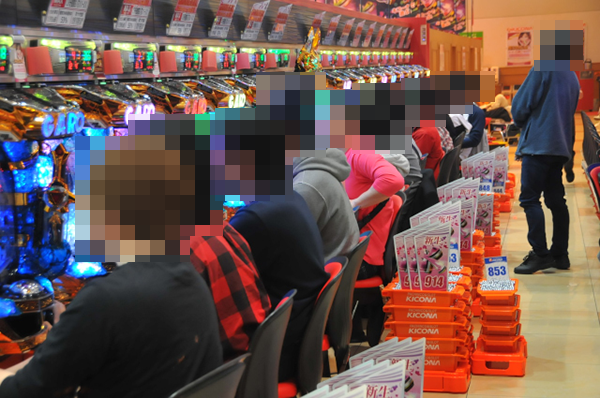 オープン直後は、4円パチンコの「ぱちんこCR真・北斗無双」といった新台や20円パチスロの「バジリスク~甲賀忍法帖~絆」などがすぐに満席。席を確保できたうれしさからか、にこやかな表情を浮かべている人も多かった。