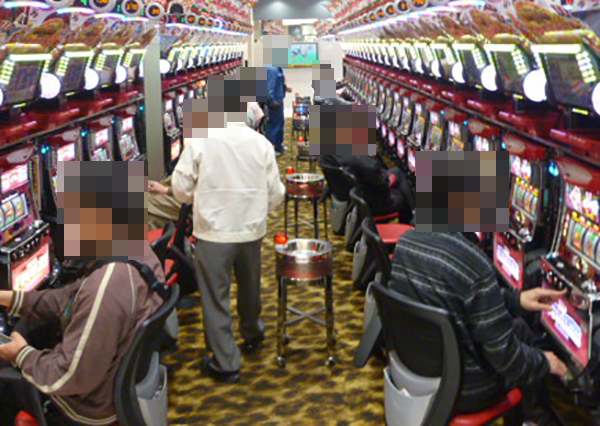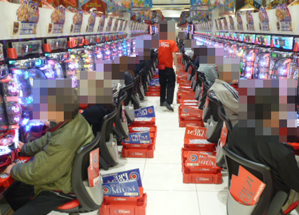 15時頃の4円パチンコは海物語シリーズを中心に大盛況。