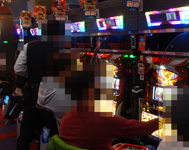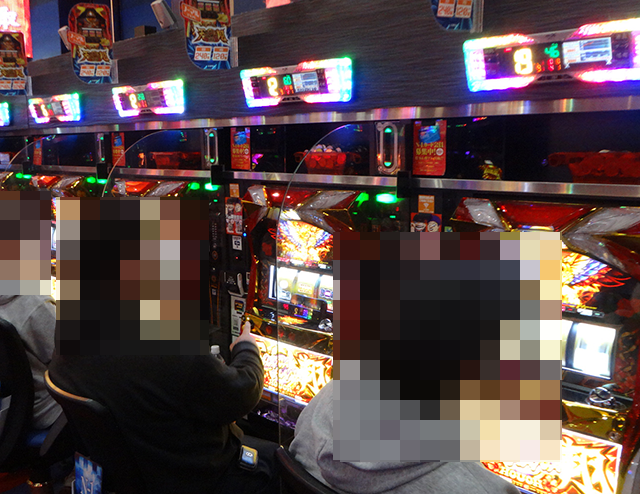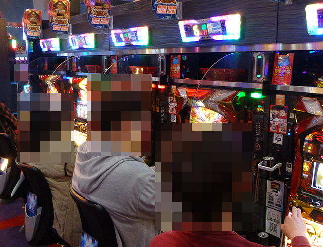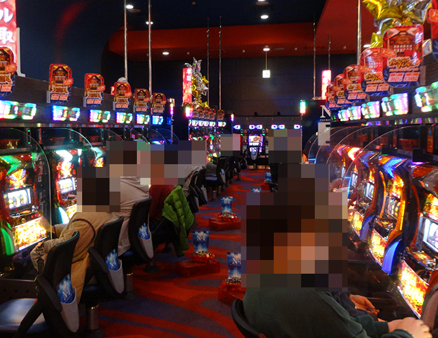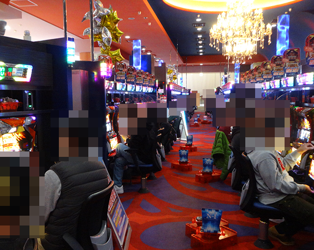 14時ごろのパチスロでは、沖スロを中心にさまざまな機種が支持されており、にぎわいに包まれていた。