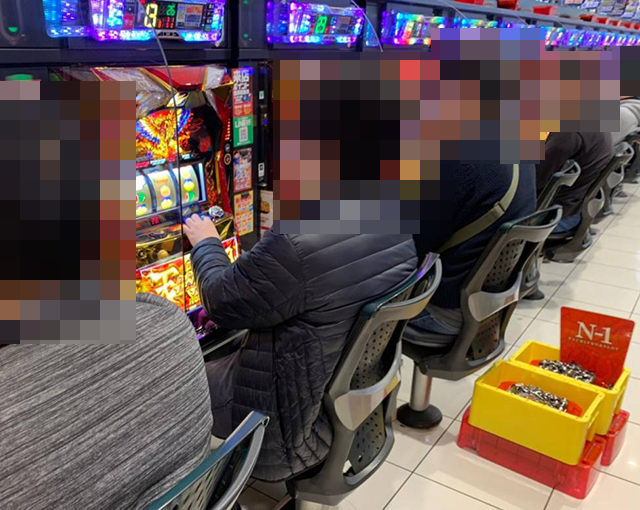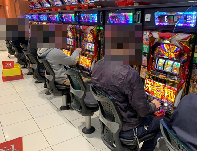 20円パチスロと5円パチスロをあわせて、30台の沖スロが設置されており、パチスロ全体の3割以上を占めている。