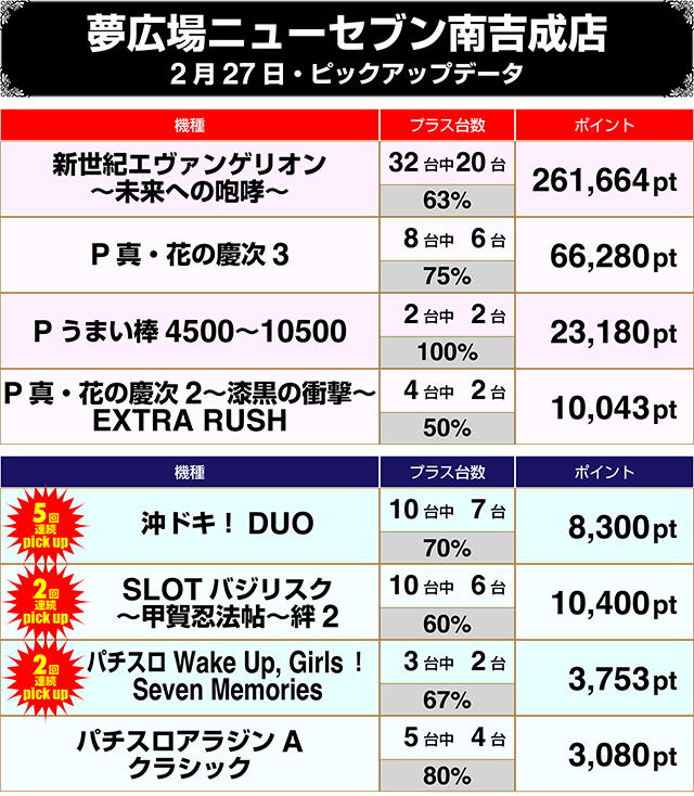 2回の週末、しかもレインボーななまるが含まれた2月18日から2月27日までのあいだに、どんな好調データが飛び出したのか!?