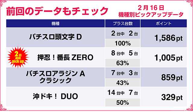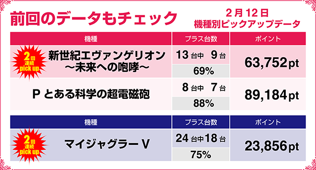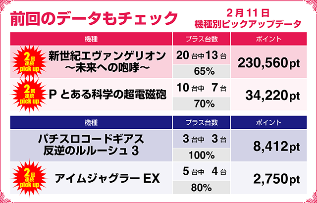 前回まではピックアップ機種の数々が連続していることもポイントだけに、今までにどのような機種が好調となっていたかは知っておくべきポイントのひとつ。