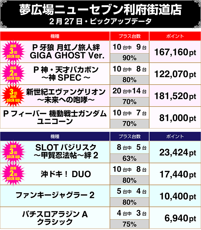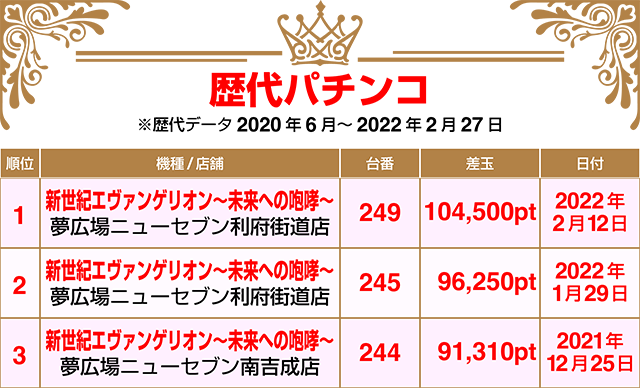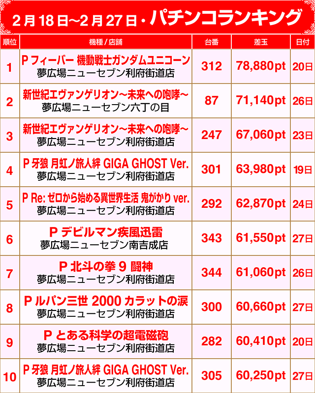 【パチンコ2月18日~2月27日ランキング】