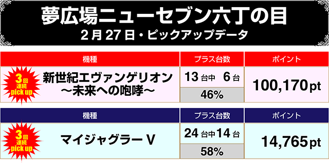 パチンコでは『新世紀エヴァンゲリオン~未来への咆哮~』のトータル差玉が+260,000ptを超えた。