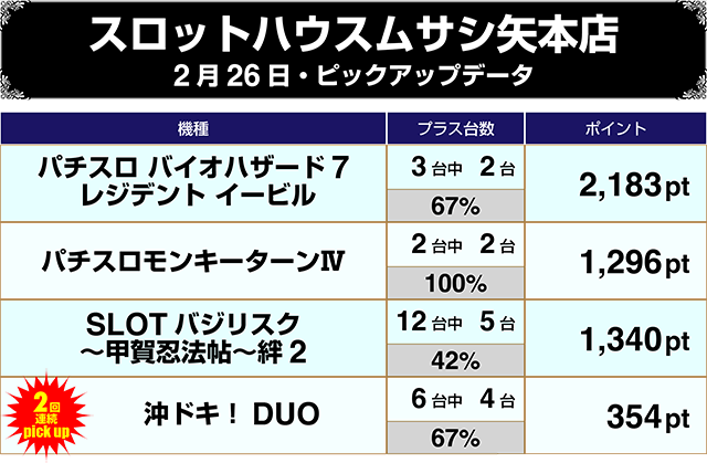 【2/26スロットハウスムサシ矢本店をピックアップ】