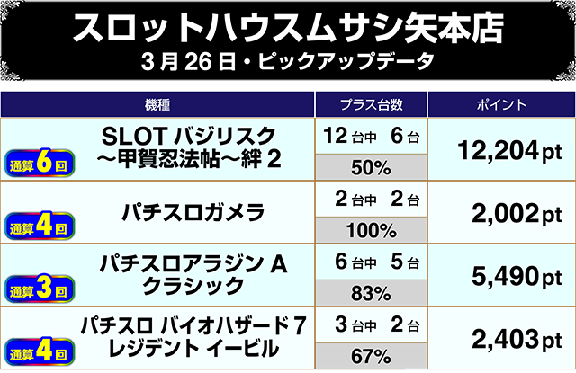 【3/26スロットハウスムサシ矢本店をピックアップ】