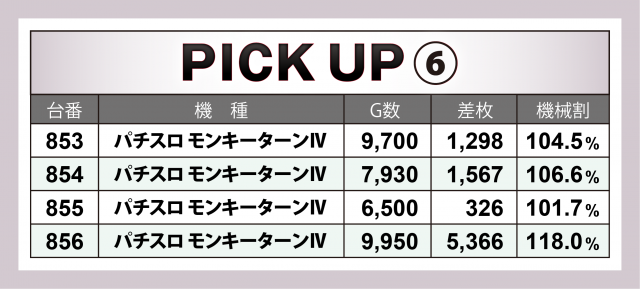 まずは[21.73] スロのチェックから。優秀30台PICK UPに注目すると、全ての台が差枚数+2千枚以上、うち18台が+3千枚以上の好成績を収めた。後述する横並び好況スポット以外では『押忍!番長ZERO』『パチスロ モンスター ハンター:ワールドTM 黄金狩猟』で+5千枚超を記録した。その他にも+4千~3千枚クラスがゴロゴロ!