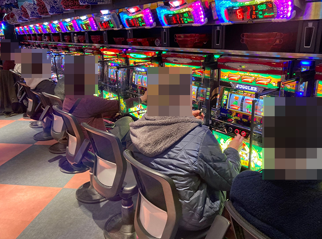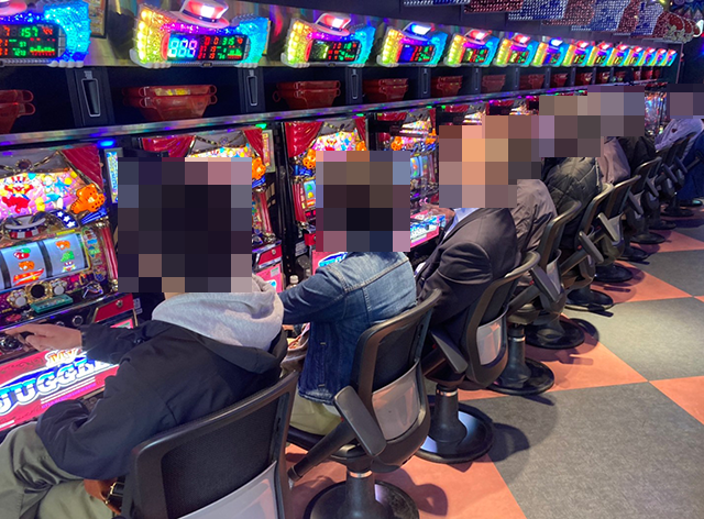 開店直後からプレイヤーたちでいっぱいとなっていたのが、「アイムジャグラーEX」!