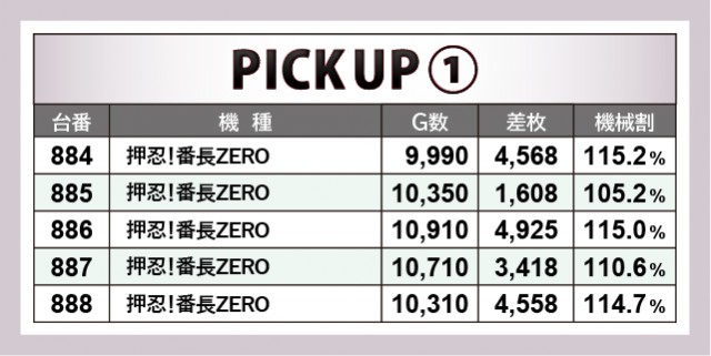 圧巻のパフォーマンスを披露したのは『押忍!番長ZERO』だ。5台設置の人気機種は、その全台がプラス差枚を達成しており、4千枚OVERが3台発生するなど、大きな盛り上がりを見せていた。万回転オーバーも目を惹く内容で、明らかな挙動にファンは恍惚の表情を浮かべていたことだろう。