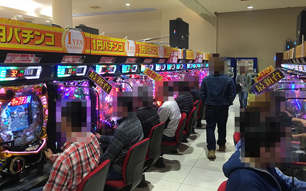 1円パチンコや5円パチスロといった低貸し玉コーナーの活気も大きく、空き台はほとんどみあたらない。