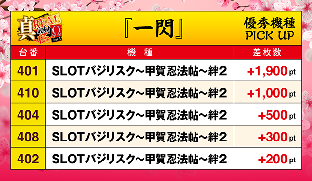 11台設置の「SLOTバジリスク~甲賀忍法帖~絆2」は7台がプラス!