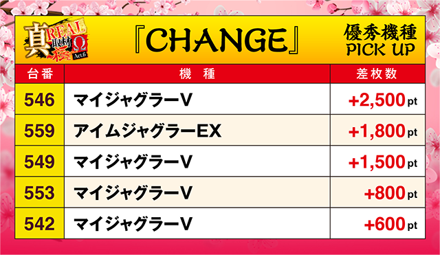 「マイジャグラーV」に、+2,000pt超の台があった。