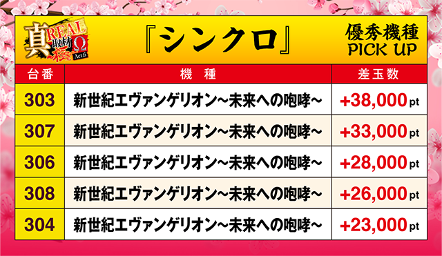 2台が+30,000ptを上回るなど、ボリューム満点の結果を残した「新世紀エヴァンゲリオン~未来への咆哮~」!