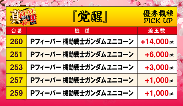 「Pフィーバー 機動戦士ガンダムユニコーン」は10台中5台がプラスpt!