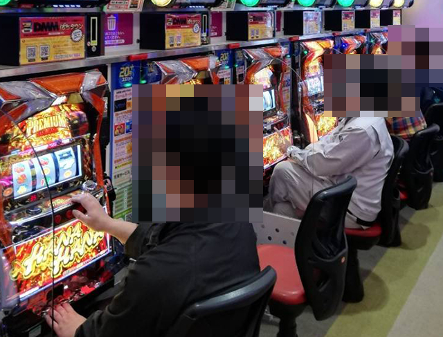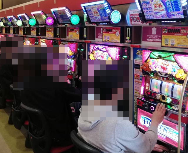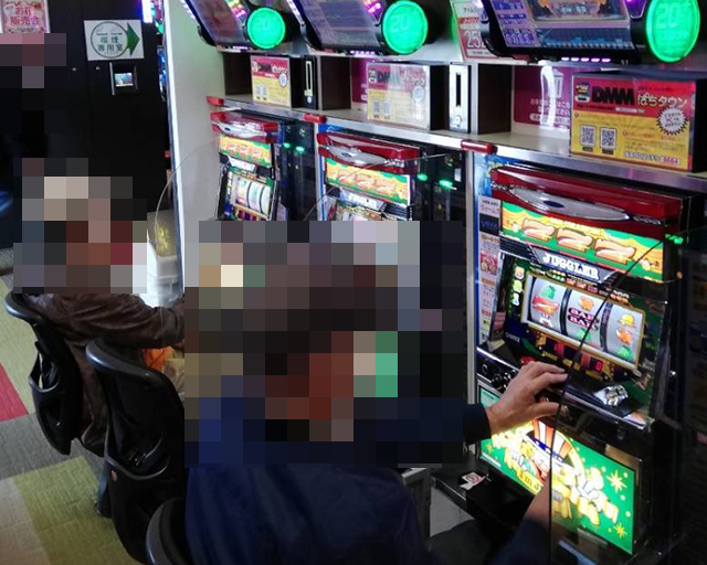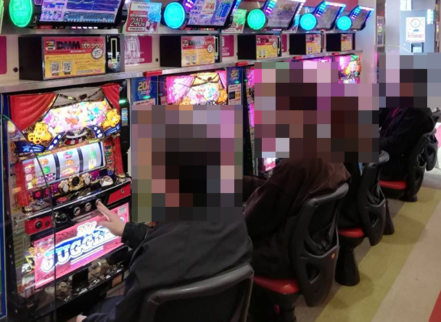取材時の「マイジャグラーV」は5台すべてが埋まっており、華やかな光景が広がっていた。