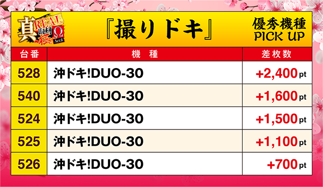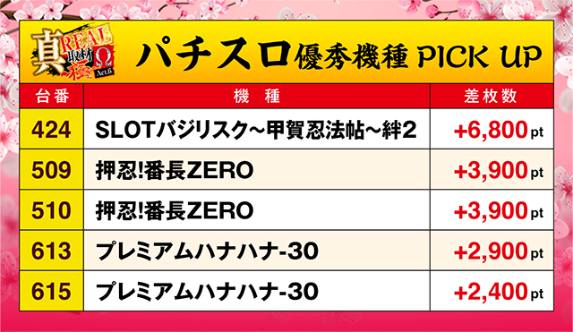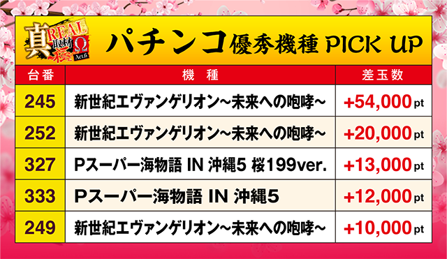 4台が+1,000ptを上回り、機種トータルでも+10,000ptクラスといった結果を残した。