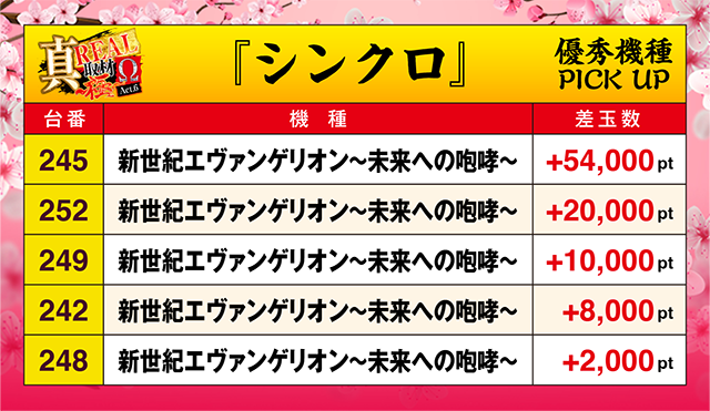 245番台の「新世紀エヴァンゲリオン~未来への咆哮~」が+50,000ptオーバー!