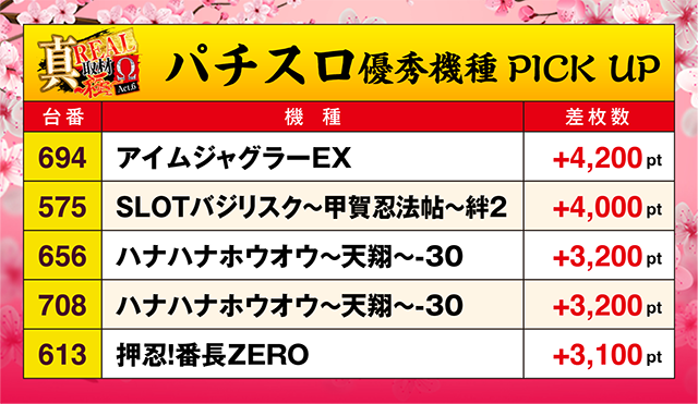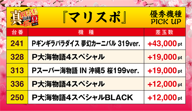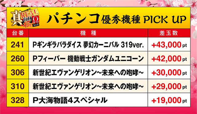 「P大海物語4スペシャル」も複数の台が+10,000ptを上回るなど、多くの台が好成績を残した。
