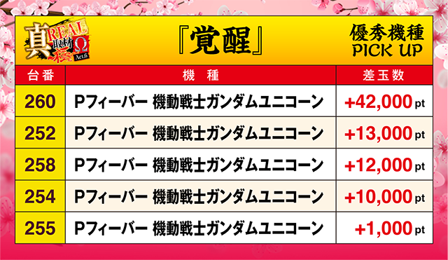 4台が+10,000ptオーバーと、活躍が目立っていたのが「Pフィーバー 機動戦士ガンダムユニコーン」!