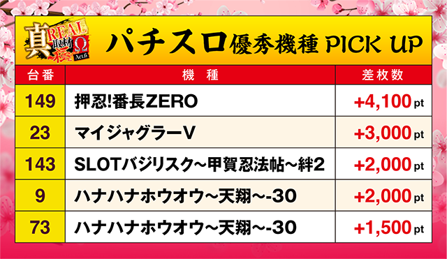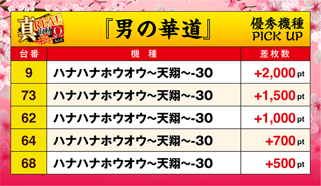 「ハナハナホウオウ~天翔~-30」の9番台が+2,000pt!