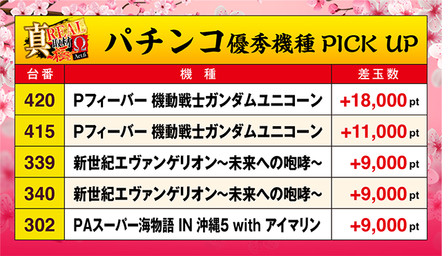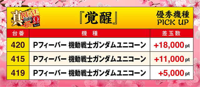 機種全体でのポイントも「Pフィーバー 機動戦士ガンダムユニコーン」はプラス。