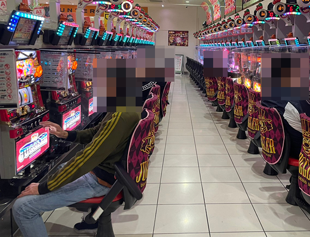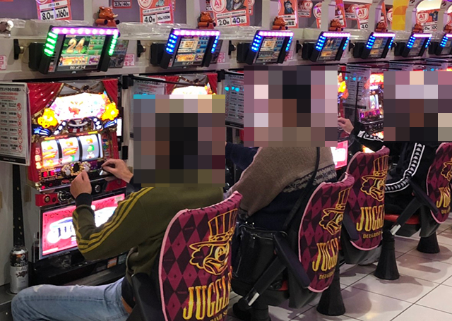 14時過ぎのパチスロでは、『ジャグラーシリーズ』がひときわ目立っていた。