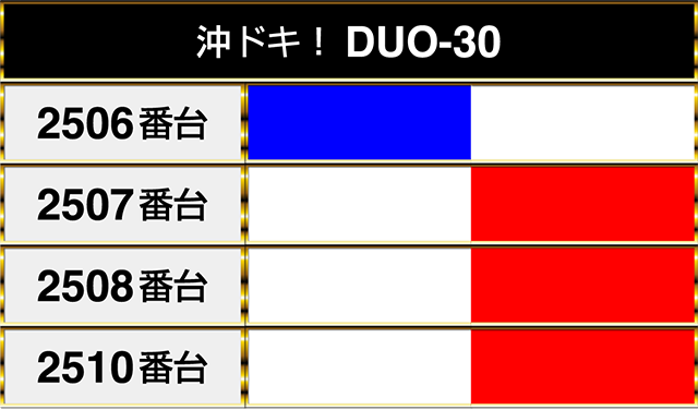 『沖ドキ!DUO-30』と『沖ドキ!DUO』は3台が並んでプラスptとなった。