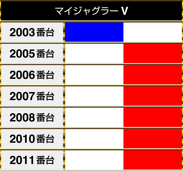 『マイジャグラーV』は6台が並んでプラスptを記録!