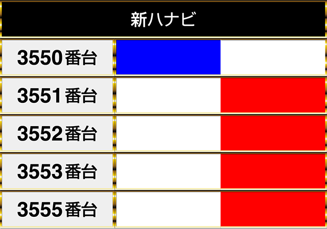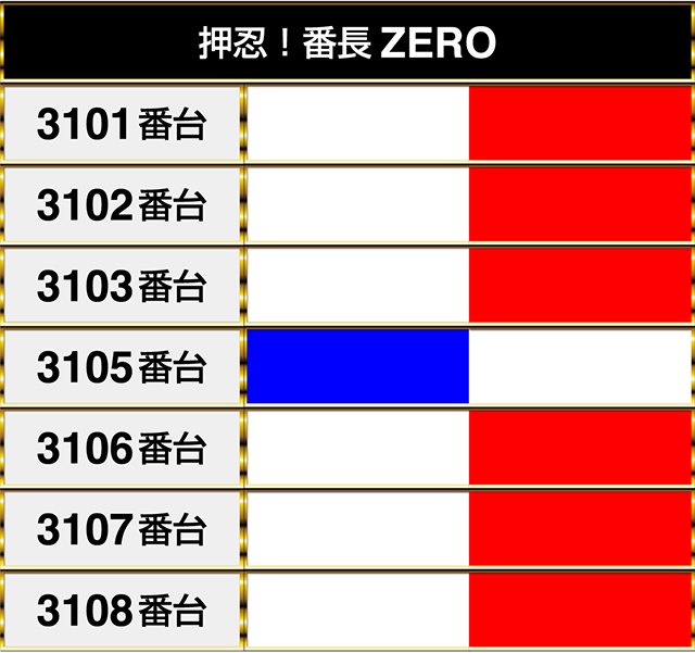 閉店時には3101番台から3103番台までと3106番台から3108番台までにプラスptが並んだ。