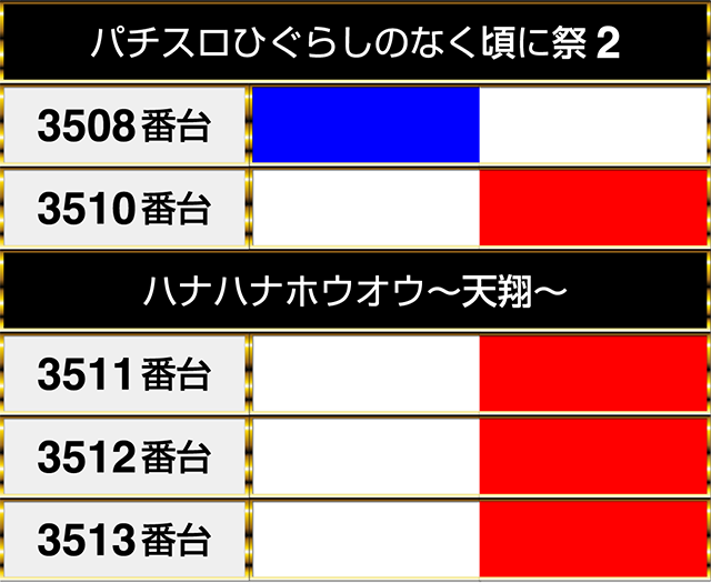 『ハナハナホウオウ~天翔~』の3台は『パチスロひぐらしのなく頃に祭2』の1台と並んでプラスptを記録した。