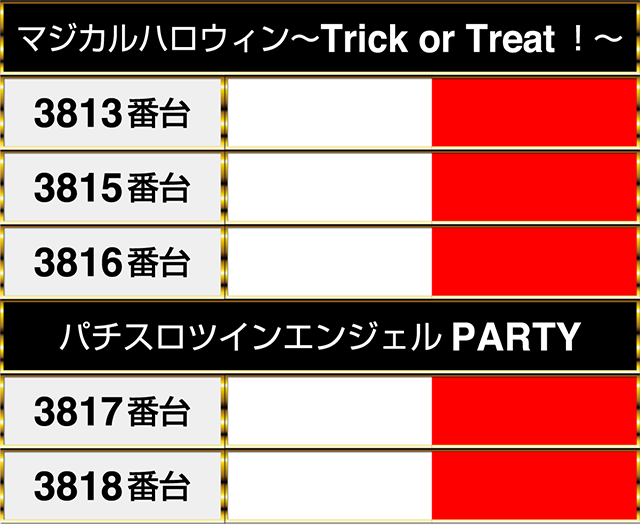 『マジカルハロウィン〜Trick or Treat!〜』の3台と『パチスロツインエンジェルPARTY』の2台が並んでプラスpt!!