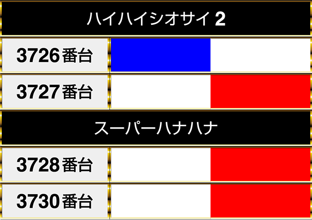 閉店時にはプラスptが連なる場所が2箇所にあった。