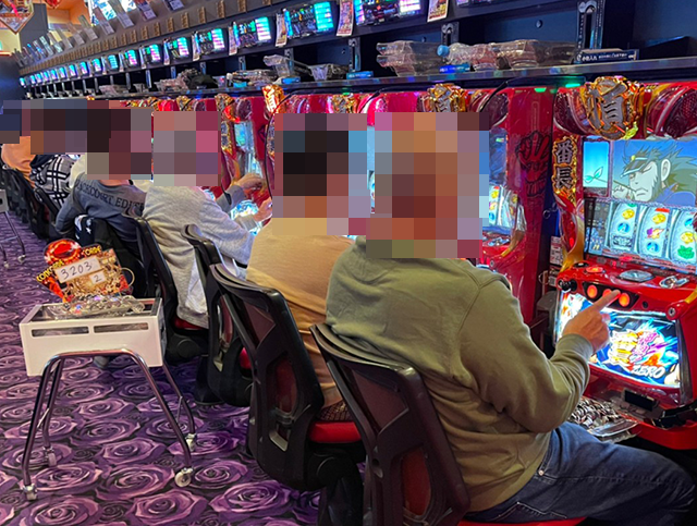 ほぼ満席となるほどに人気があり、遊技を満喫しているような姿がズラリと並んでいた。
