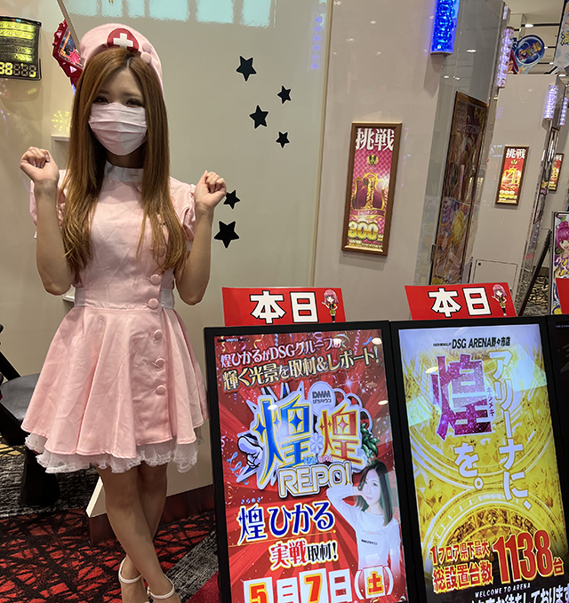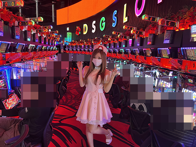 ひかるちゃんも、パチスロの「マイジャグラーV」で実戦をおこないました!