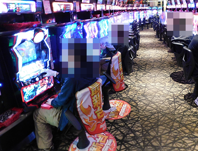 16時ごろには16名が座っており、3箱や1箱の持ち玉で遊技をおこなっている姿があった。