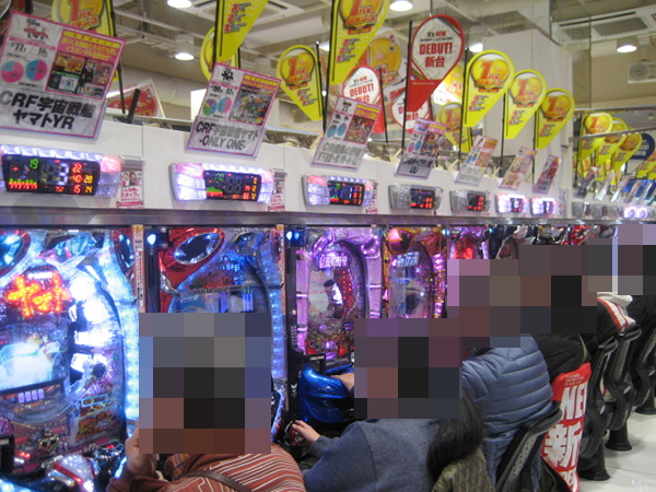 2円パチンコでは、最新機種の「ぱちんこCR真・北斗無双」が大好評。機種の魅力を堪能しているようなプレイヤーの姿もあり、華やかな光景が広がっていた。