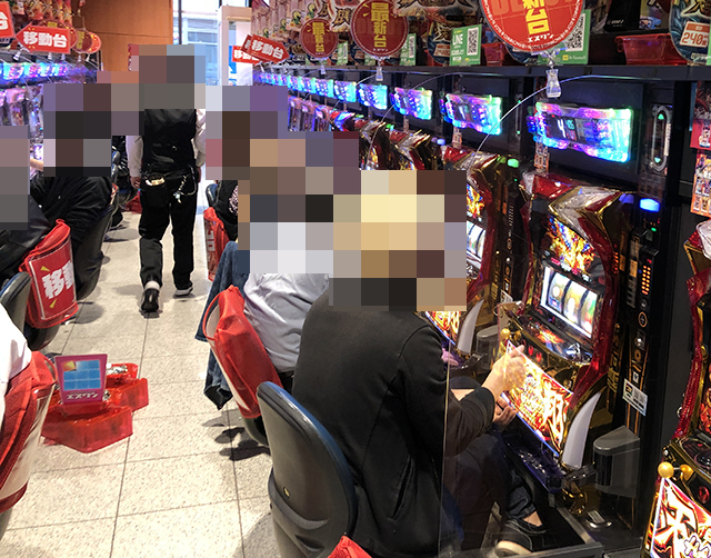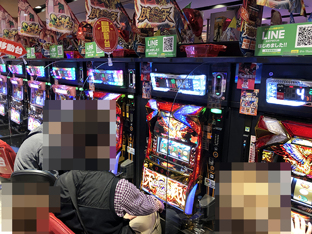 ホール内をみてみると、パチンコとパチスロの両方に華やかな光景が広がっており、にぎわいが感じられた。