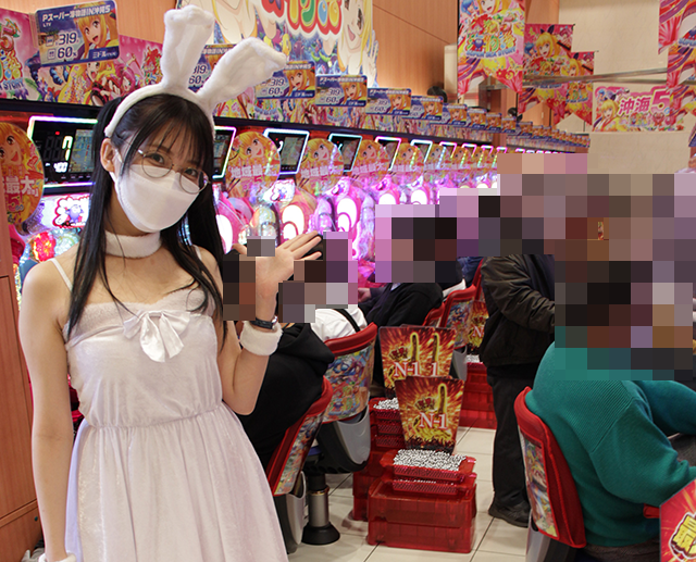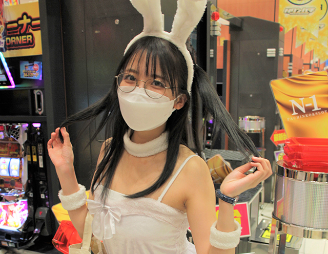 楽しそうに遊技をおこなっているお客さまの姿をみて、紫苑ちゃんも思わずニッコリです(@ ̄艸 ̄@)