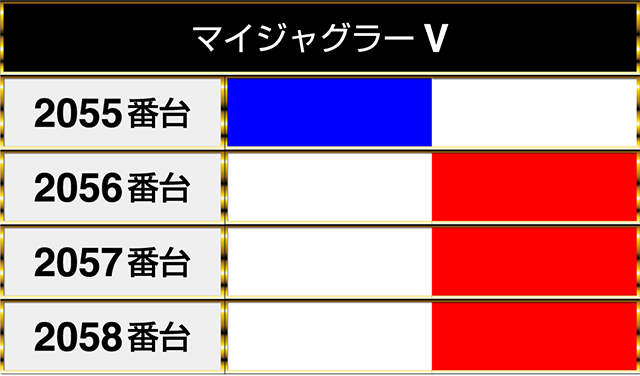 『マイジャグラーV』の3台が並んでプラスptを記録!!