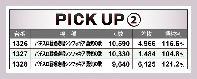 今回、[1,000円/46枚] スロでは全台トータルで+5,980枚と前回の+7万枚超を超えることは出来なかったものの勝利。当日はマイナス台の凹み分が大きかったことが思う以上にトータル差枚数が伸び悩んだ原因だろう。しかし評価pt数の高さは20台中盤とレベルの高さをキープしている。「英雄」取材で連勝を伸ばしていることと併せて、朝からファンが詰めかける理由にも納得だ。