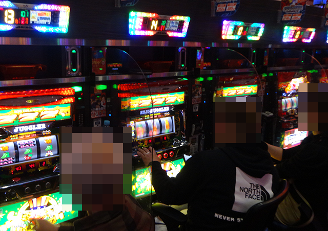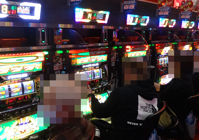 5台すべてが稼働していた『マイジャグラーV』も大きく盛り上がっていた。
